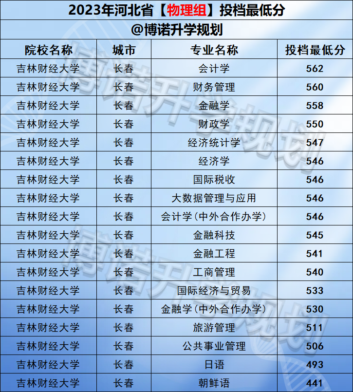 吉林财经大学共开设34个本科专业,在河北招生的专业,统计学、金融学、金融工程、会计学、审计学、财务管理、财政学和税收学都非常不错。