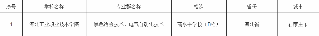河北只有1所学校河北工业职业技术学院入选了高水平学校建设单位,档次为B档。