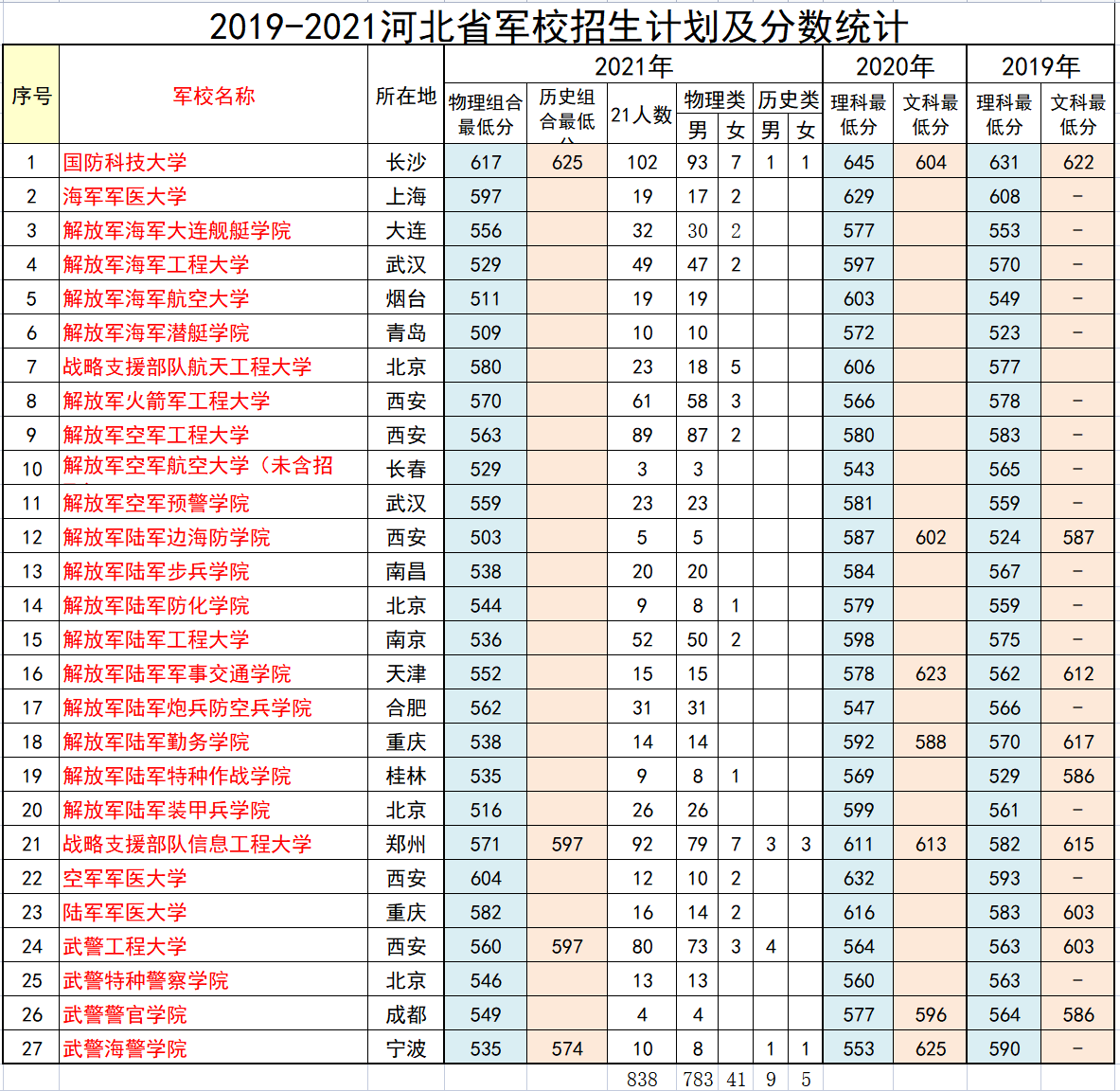 由于军校还没有公布2022年相关录取分数,所以只发布到2019-2021年,待军校公布2022年录取数据后会更新。